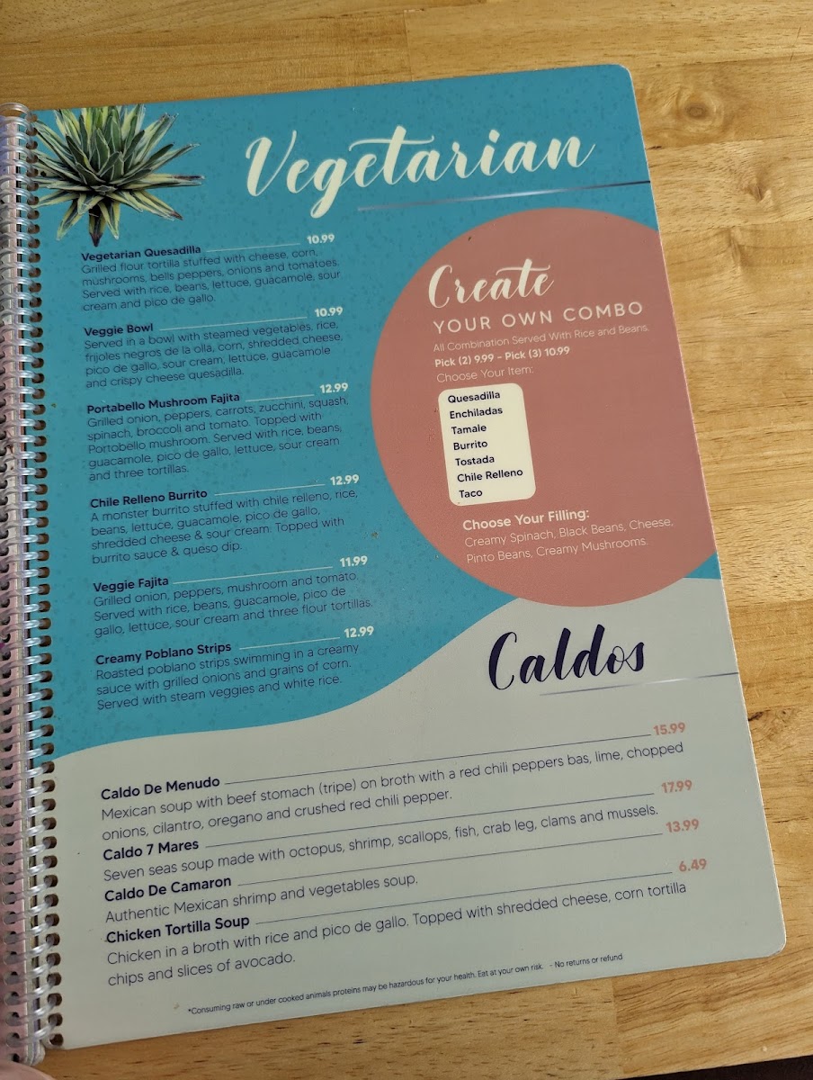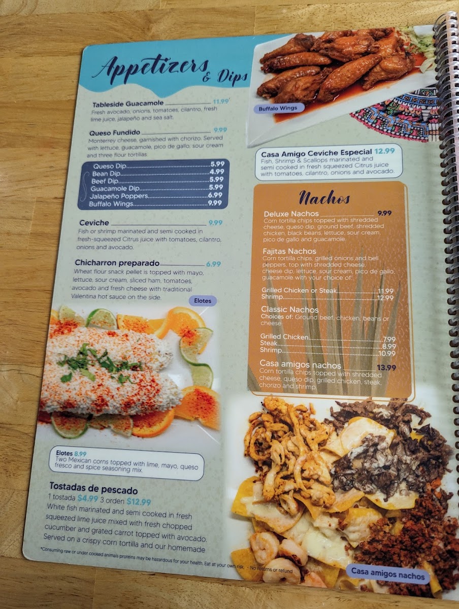 Fried flour tortilla filled with beef tips or shredded chicken topped with queso dip. served with lettuce, sour cream, pico de gallo, guacamole, side of rice and beans. consuming raw or undercooked animals proteins may be hazardous for your health. eat at your own risk.
